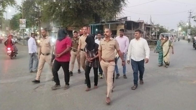 आठ मार्च रोजी राहुरी पोलीस स्टेशन च्या पोलीस कर्मचाऱ्याला मारहाण करणाऱ्या तीन आरोपीची राहुरी पोलिसांनी काढली शहरातून धिंड