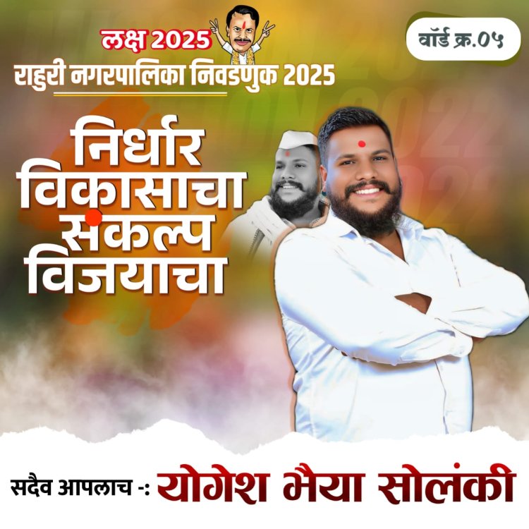 श्री योगेश भैय्या सोलंकी जनतेने आणि शिवसेनेने यांना या वार्ड नंबर पाच मधून सार्वत्रिक 2025 नगरपरिषद निवडणूक लढविण्यासाठी जी संधी दिली आहे या संधीचे मी सर्व जनतेचे व सेनेचा आभारी आहे
