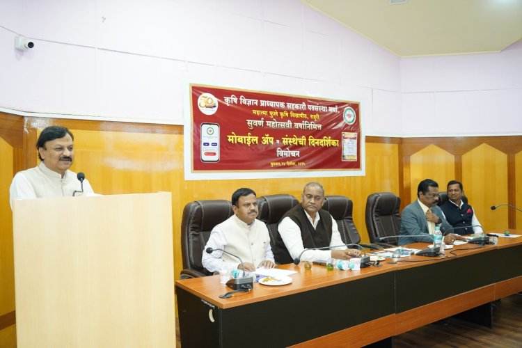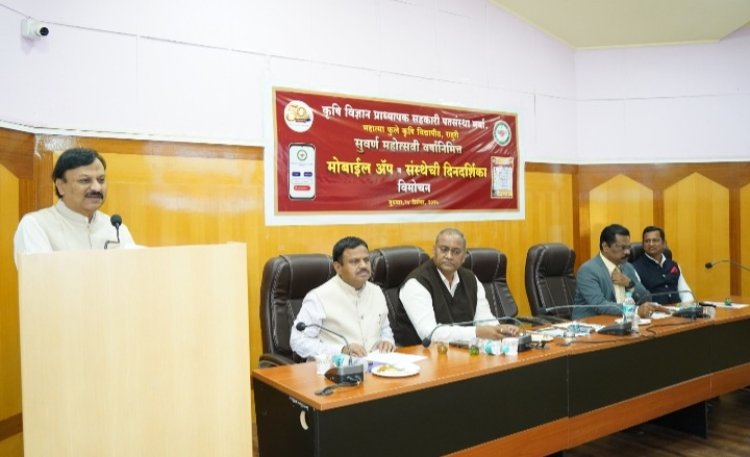 महात्मा फुले कृषी विद्यापीठ, राहुरी येथील कृषी विज्ञान प्राध्यापक सहकारी पतसंस्थेच्या सुवर्ण महोत्सवी वर्षाचे औचित्य साधून आधुनिक मोबाईल बँकिंग ॲप व दिनदर्शिका २०२६ चे दिमाखदार लोकार्पण सोहळा महात्मा फुले कृषी विद्यापीठाचे कुलगुरू डॉ. विलास खर्चे यांच्या प्रमुख उपस्थितीत संपन्न झाला. यावेळी व्यासपीठावर विस्तार शिक्षण संचालक डॉ. गोरक्ष ससाणे, संशोधन संचालक डॉ. विठ्ठल शिर्के, अधिष्ठाता डॉ. साताप्पा खरबडे व पतसंस्थेचे चेअरमन डॉ. नारायण मुसमाडे उपस्थित होते.