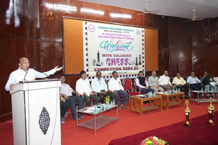 प्रमुख मार्गदर्शन करतांना राजेंद्र कोंडे म्हणाले बुध्दीबळ स्पर्धेची निर्मिती आपल्या देशात झालेली आहे. या खेळामध्ये रशिया व अमेरिकेचे वचर्स्व होते. आता बुध्दीबळ स्पर्धेत जगात आपले वचर्स्व आहे. आज फिडे विश्वचषक स्पर्धेत भारताची 19 वर्ष दिव्या देशमुखने बुध्दीबळ स्पर्धेत अंतिम फेरित धडक मारली आहे. या अनुषंगाने आज अंतरमहाविद्यालय बुध्दीबळ स्पर्धेचे उद्घाटन कैतुकास्पद आहे. या क्रीडा प्रकारामुळे आकलन क्षमता वाढते म्हणुन हा क्रीडा प्रकार शैक्षणीकदृष्ट्या महत्वाचा आहे. या खेळामुळे बौध्दीक मल्ल तयार होतात. महाराष्ट्र बुध्दीबळ संघटना या खेळाला सदैव्य प्रोत्साहन देत आहे व देत राहिल. यावेळी कार्यक्रमाचे प्रास्ताविक डॉ. सचिन नलावडे यांनी केले. या क्रीडा स्पर्धेमध्ये 29 कृषि महाविद्यालयांचे 29 संघ यामध्ये 133 मुले व 65 मुली सहभागी झाले आहे. या कार्यक्रमाचे सूत्रसंचालन डॉ. सुनील फुलसावंगे यांनी केले तर आभार डॉ. डॉ. विक्रम कड यांनी मानले.