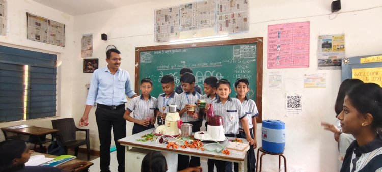 सावित्रीबाई फुले विद्यालयात राष्ट्रीय हरित सेनेमार्फत घेण्यात आली नैसर्गिक रंग निर्मितीची कार्यशाळा ; फळाफुलांपासून रंग निर्माण करून विद्यार्थ्यांनी केली कमाल .