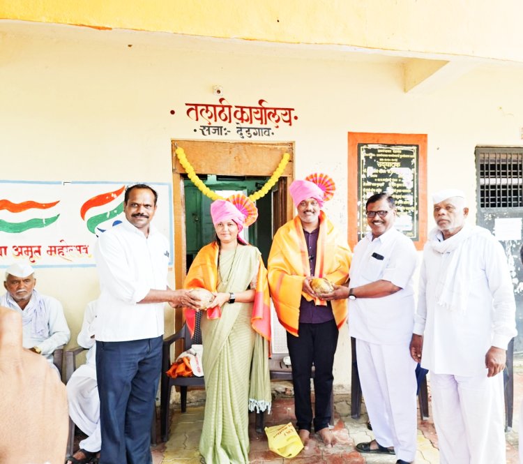 नूतन तलाठी मंगल गुसिंगे यांचे स्वागत तर तलाठी बालाजी मलदोडे यांना निरोप.