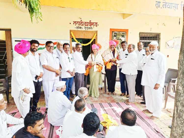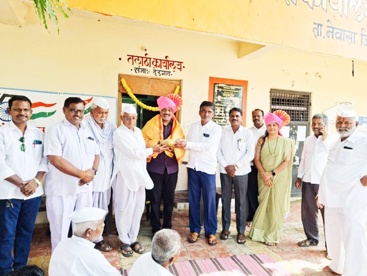 नेवासा तालुक्यातील बालाजी देडगाव येथील आत्ताच झालेल्या प्रशासकीय बदलीत तलाठी बालाजी मलदोडे यांची बदली झाली तर त्या जागेवर मंगल गुसिंगे यांची देडगाव सजेवर नियुक्ती झाली . त्याबद्दल ग्रामस्थेच्या वतीने नागरी सन्मान करण्यात आला.